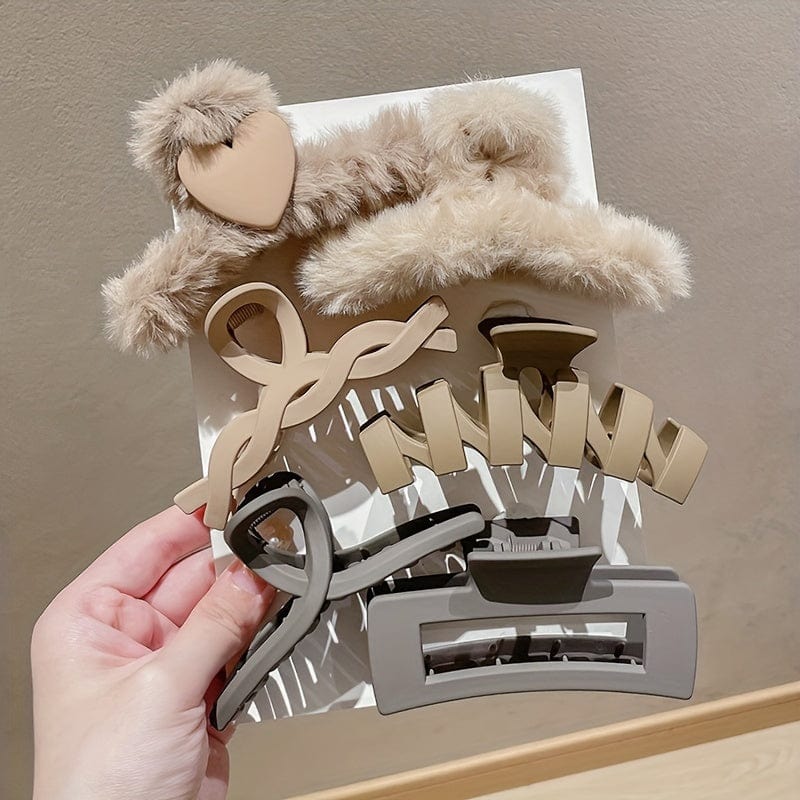 The 6-Piece Cozy Plush Hair Claw Clips Set offers a blend of stylish charm and practical functionality. Designed with a soft, plush finish, these clips bring a touch of winter elegance to your hairstyle. The durable non-slip grip ensures that your hair stays securely in place, making these clips ideal for both everyday wear and special occasions. This set is perfect for adding a cozy and fashionable touch to your look.