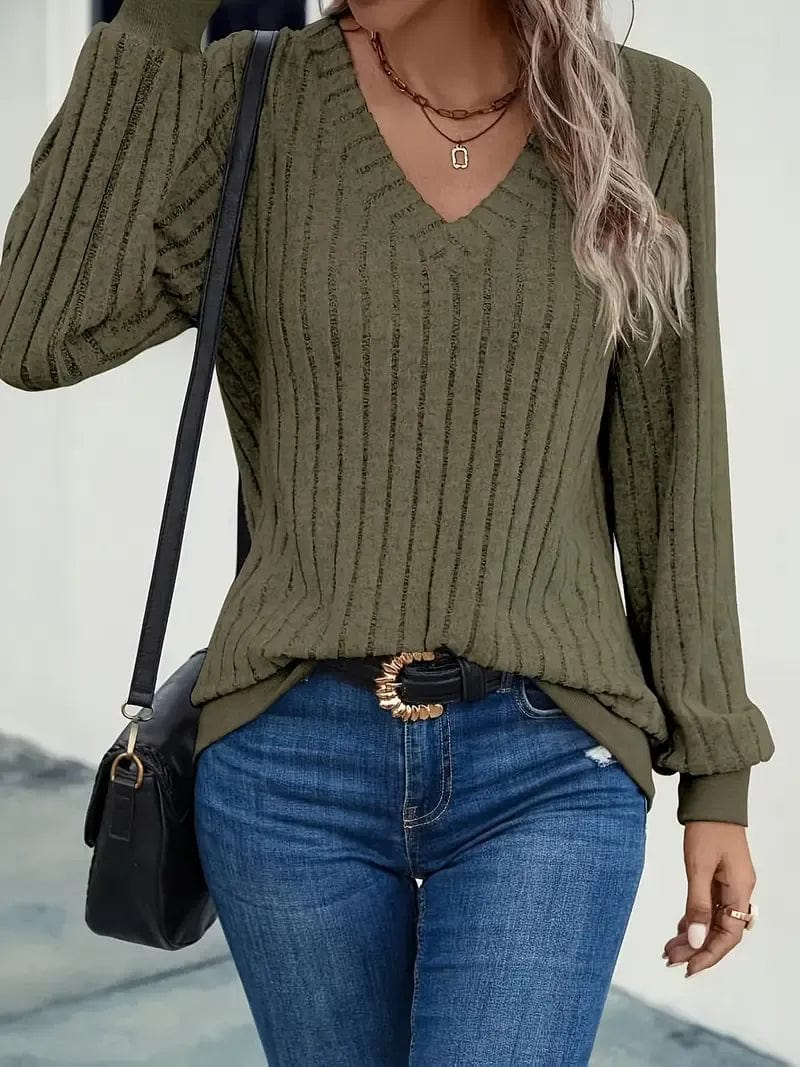 Soft Ribbed Knit V-Neck Pullover Sweater For Women's – Cozy Long Sleeve Sweater for Fall & Winter Fashion