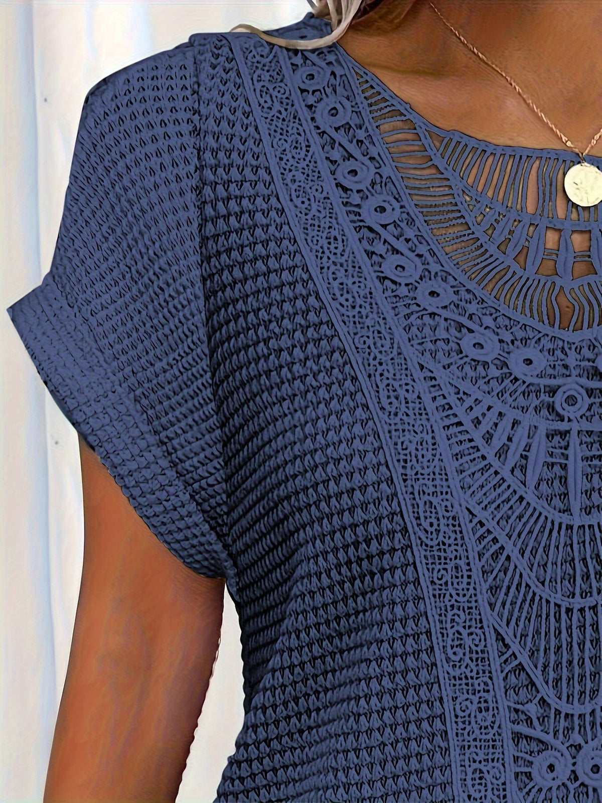 Women's Vibrant Lace Splicing Crew Neck T-Shirt