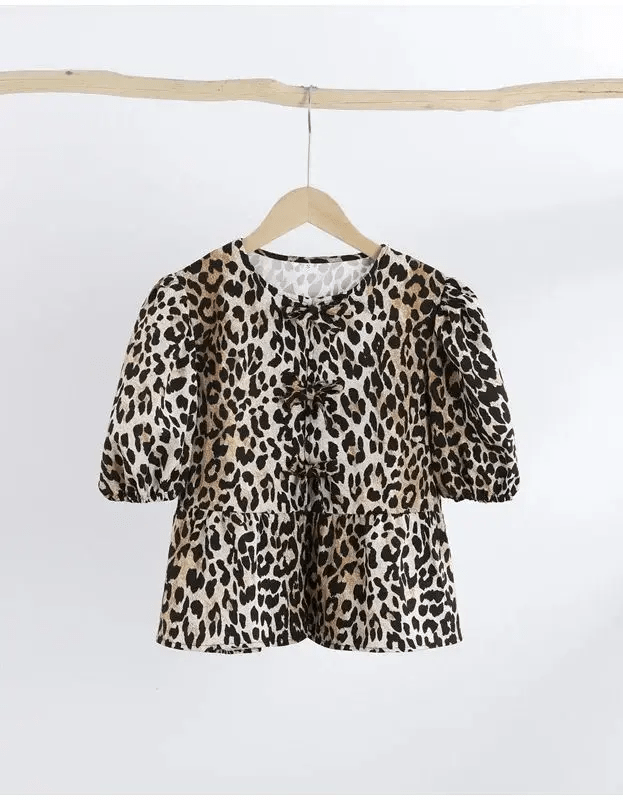 Chic and Playful Leopard Print Bow Lace-Up T-Shirt